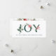 Julkortet för botaniska vinterbär har grönt och rött blommigt brev som stavar "JOY" på framsidan. Resten av hälsning ligger under och säger: "TILL VÄRLDEN HAR LORD KOM." Baksidan har en hälsning som säger "KAN MIRAKELN AV CHRISTMAS FYLLA DIN HJÄRTA MED OCH JOBI". Du kan anpassa dig med din familj namn och byta hälsning om du vill.