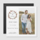 Det här bröllop spara datum-kortet har en vintertid med röda bär och löv med händelseinformation i modernt typsnitt. Om du vill ha en mer avancerad anpassning av den här designen klickar du på länken Anpassa ytterligare.