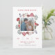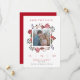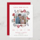 Ett modernt vinterbröllop spara datum meddelande med din favoritbild av förlovningen i ett fyrkantigt ram av vattenfärg i röd, blå och brun bär med grönt löv. Anpassa med dina detaljer.
