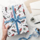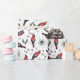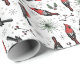 Denna festliga helgdag som omsluter pappra egenskaper roligt mönster på handdragna röda kardinalfåglar, gräs, röda hollbär och små stjärnor, allt mot elegantens vita bakgrund.