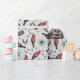 Denna festliga helgdag som omsluter pappra egenskaper roligt mönster på handdragna röda kardinalfåglar, gräs, röda hollbär och små stjärnor, allt mot elegantens ljusa grått-bakgrund.