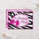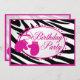 Rosa födelsedagsfest inbjudan och zebra ränder underbar för party under vintern. Underbar för att ha en födelsedagsfest för isskidåkning eller sled.