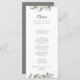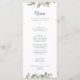 Det här bröllop-middagsmenykortet för blommigt är perfekt för elegant bröllop. Den enkla designen har vita blommor med vintern grön och eukalyptus löv, med en modern land-känsla.