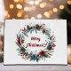 En elegant vinterkrans med julblommor, gräs och vinterbär på ett gren.