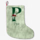 Söt och festive-helgdag har brev P i versaler med grönt shimmer-fyllning och är förskönad med vinterblommor och lövvattenfärg bouquet på den nedsänkta harlequin-bakgrunden från mönster i grönt. Anpassa till namn eller annat meddelande