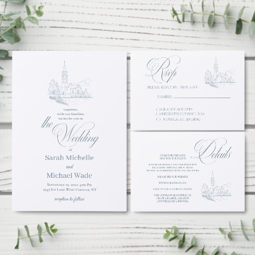 Winter Blue Church Calligraphy Wedding SuiteDesignad av Phyllis Waugh