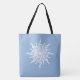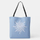 Unik musikalisk-temad tote bags för musiker och musikalisk älskare under vinterhelgdagarna. Smälter vita glimmer från en snöflinga som är gjord av tredubbla citattecken. Använda textmallen om du vill lägga till ett första eller ett monogram till mitten i dekorationsdesignen. Redigera om du vill ändra den blå vinterbakgrunden, mittcirkeln gräns och elegant, gamla stil-teckensnitt till valfri färg. ♡ Idyllfire