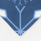 Vinterfilt med mönster av snöflingor och iskristaller i ljusblått och vitt på mörk blått bakgrund.