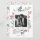 Det här anpassadet med 1-fotokort har elegant handmålade vattenfärgsbotaniska helgdag som ram fotot på ett vackert sätt. Kommer med ett matchande mönster på baksidan och rum för skriva av ett personlig-meddelande. Vill du anpassa ännu mer? Klicka på "Redigera med Design Verktyg". Den här designen ingår i en samling. Originalteckning av designern Nicole Barreto. Köp helgdagskort och mycket mer på www.zazzle.com/store/nbpaperco