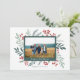 Det här anpassadet 1- fotokortet har handmålat elegant vattenfärgsbotaniska helgdag som på ett vackert sätt ramar fotot. Den levereras med ett matchande mönster på baksidan och rum till skriva ett personlig-meddelande. Vill du anpassa ännu mer? Klicka på "Redigera med Design Verktyg". Den här designen ingår i en samling. Originalteckning av designern Nicole Barreto. Köp helgdagskort och mycket mer på www.zazzle.com/store/nbpaperco
