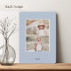 Elegant Hanukkah-fotokort innehåller ett favoritfoto omgivet av ett geometriskt gräns av blek blå botaniskt blad och små blommar av vattenfärgblommor på en rik marin bakgrund. Din anpassningsbar Hanukkah hälsning och familjen namn eller namn visas vid grund i chic med vita bokstäver. Anpassa baksidan med två extra foton och ett personligt meddelande.