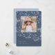 Elegant Hanukkah-fotokort innehåller ett favoritfoto omgivet av ett geometriskt gräns av blek blå botaniskt blad och små blommar av vattenfärgblommor på en ljusblå bakgrund. Din anpassningsbar Hanukkah hälsning och familjen namn eller namn visas vid grund i chic med vita bokstäver. Anpassa baksidan med ytterligare två foton.