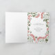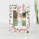 Elegantens intilliggande helgdag-fotokort innehåller ett favoritfoto omgivet av en gräns av lush grönt botaniskt blad och små blommar av rödfärgad blomma på en skarp vit bakgrund. Din anpassningsbar Julhälsningar och familjen namn eller namn visas under fotot med chic grått-bokstäver. Lägg till ett förhandsutskrivet anpassningsbar på insidan.