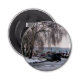En fotografisk vintersnöscen med smalbåtar på den frysta kanalen. Kanalbåtar, som i Förenade kungariket kallas smalbåtar, användes ursprungligen för att transportera varor runt land. De används nu främst för fritid och lockar människor från hela världen att njuta av vår landsbygd. Dessa båtar ser mycket söt ut med sina ljusa färgader, traditionellt blåa, röda eller grönt. Blommor och slottsdesigner är också en del av de mer traditionella båtarna.