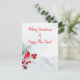 Fira vinterskönheten med vår elegant Vinterkardinaljulkort. Den här serenkonstruktionen har en pulserande kardinal som går på ett holly gren, som är täckt av ett känsligt lagrar i snö. Det här kortet är ett perfekt sätt att sprida helgdag på. Det är ett pappert kort som är uppbyggt av slät, vit färg och med en lyxaktig avsluta. Det här kortet finns i båda porträtt-riktningarna och kommer säkert att ge dina semesterhälsningar en aning vintermagi.