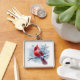 Winter Cardinal with Snowflakes on Icy Branch Fyrkantig Silverfärgad Nyckelring