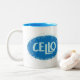 Den mönstrade cellottexten i en blå dekorativ oval är en unik presentdesign för strängmusiker, skolmusiklärare och studenter i orkester och strängensembler.