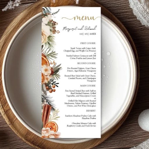 Winter Citrus Blommigt Elegant jul Bröllop Placeringskort