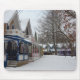 Vinter snö accentuerar de färgstarka viktorianska bombarna i Oak Bluffs på Martha's Vineyard. Martha's Vineyard CampMeeting Association (MVCMA), ett populärt attraktion på ön, är hem för hundratals Viktorianska gingerbröd. Oak Bluffs var gång känd som Cottage City. Martha's Vineyard ligger i Massachusetts, precis utanför Cape Cod.