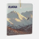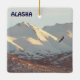 En örn längs den snö-täckta Chugach Range nära Anchorage, AK. Anpassadet "ALASKA" visas också.