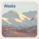 Örn (Haliaeetus leucocephalus) flyger framför Chugach Range i snö nära Anchorage, AK. Anpassadet "Alaska" står också med.