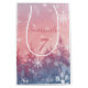 The Most Magical Way to Present Your Gift! This enchanting Winter Fairy Tale Gift Bag continues your romantic winter theme with the same ethereal watercolor design of pink dawn skies, delicate snowflakes, and ghostly forests. Perfect for presenting birthday treasures, this medium-sized bag combines storybook magic with practical elegance for a girl's 7th birthday celebration.