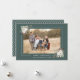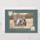 En modern design med en traditionell tvist. På framsidan av det här platta helgdag finns en vågrät av ditt favoritfoto, i ett tunt vitt ram med två löv av festive vattencolor blommigt och hallon bouquets. Tecknen hälsning och personlig är vita. Den här designen av inslag är avaktiverad med en modern grönt-bakgrund. Baksidan har en vit länkad diamant mönster på en tealbakgrund.