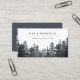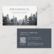Rustic elegant-affärskortet har en skog av gräs träd i vassa skuggor av dammigt blått och kol-grått, med två linjer anpassningsbar text för ditt företag namn och/eller ditt namn och din affärsbeskrivning, i en chic kombination av block och kursiv stil. Lägg till kontaktinformationen för fullt på motsatt sida i vitt på dammblått, tillsammans med ett anpassade QR-nummer.