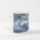 Snö täckte grisen träd i skogen. Färsk vit snö, blå och grönt färg, vinterhumör. God jul och Gott nytt år till er och er! Text God jul. Du kan ändra texten.