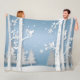 Stryk pappersdesign i blått och vitt med träd, ekorrar och snöflingor.
