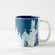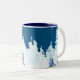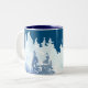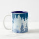 Vinterskogar Scene 2-tonkaffe Mugg. Bild av Träd täckt i snö bredvid en flod på natten.