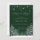 Söt bröllopsinbjudan med vacker mörk grönt bakgrund, har delikat snöflingor, Vita vintern Träd, Gräs Träd och hängande vitt ljus.