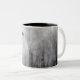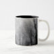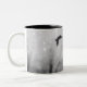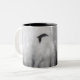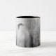 En ensam björnfågel flyger genom skogen på vintern när snön försiktigt faller omkring henne på den vackra kaffemuggen.