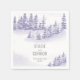 Vinterbröllop-personlig-cocktail-blöjor med scenisk vattenfärgsdesign i lavender- och grått-skuggor. I snö finns ett romantiskt skogslandskap i bergstrakterna med gräs träd, droppar och en ljussken snö. Mallen är inställd för att lägga till namn i briden och trippen samt bröllop-datumet. Om du vill matcha produkter kan du bläddra i min Winter Forest-samling.