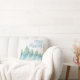 Fredlig Winter Forest Watercolor Teckning God jul Dekorativ kudde. Vattenfärgen teckning i träd på vintern, vinterskogen med snö i blått och grönt färg. Utformningen är fredlig och lugn. Du kan anpassa texten.