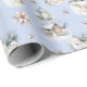 Charming winter woodland pattern featuring white wolves, polar bears, snowy cottage, frosted florals, vintage lantern, delicate snowflakes on an icy blue background. A cozy rustic winter wrapping paper pattern perfect for a winter Birthday or Holiday gift giving.