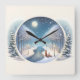 Winter Foxes by Moonlit Snowy River Fyrkantig Klocka