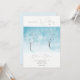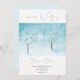 Bröllopsinbjudan med vinterlandskap med vattenfärg i blå toner. I mitten finns två träd täckta med snöfrost, grenar på träd skapar en tunn webben mot himlar och sträcks mot varandra i vintercharm som skapar en dyl för kom i många år. Vinterny inbjudan till bröllop. Freshness-samling för vinter.