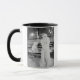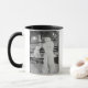 Ett par snö polerar en kväll i parken, medan en konstig främling ser ut i bakgrunden denna roligt vinter mugg.