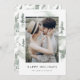 Vår elegant helgdagskort visningar ditt favoritfoto omgivet av vackra vattenfärgsfärgade gräs träd. Anpassa designen genom att lägga till en anpassningsbar hälsning och ditt namn. Baksidan av fotokortet i helgdag har en mönster av muterade vattenfärgsfärger i grönt och löv.