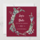 Winter Greenery Burgundy Bröllop spara datum Datumet