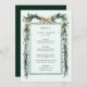 This wedding menu features a watercolor winter greenery garland adorned with pine branches, holly berries, botanical foliage, gold ribbon bows, and simple calligraphy. For more advanced customization of this design, please click the BLUE DESIGN TOOL BUTTON above! Matching items are also available.