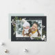 Med elegantens botaniska helgdag-fotokort placeras vågrät eller landskapets orienterade framsida och centrum, som accentueras av gröntens botaniska sprickor, blad, löv och vita liljor av dalen-blommorna, på en kontrasterande träkol av svart bakgrund. Lägg till din anpassningsbar jul hälsning (visas med "Glad helg"), namn och året. Anpassa baksidan med två ytterligare foton på en blek bakgrund. En elegant och ett jakt helgdag-kort som säkert passar alla på din julkortslista den här säsongen!
