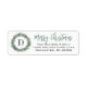 Elegantens adressetikett "God jul" med helgdag har en rustik chic runt krans av vintern vattenfärgsgrej som bildar familjens efternamn med det första monogrammet brev. Anpassa den moderna ordalydelsen av grönt och kol-grått med anpassningsbar hälsning och returadress. Vit bakgrund färg.