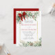 Christmas Wedding Invitation – A romantic winter design featuring a soft watercolor frame of evergreen foliage and red berries, gently accented by a warm golden border that adds a touch of refined elegance. Finished with a delicate red bow, this design feels festive, timeless, and inviting. Perfect for a cozy Christmas celebration, an elegant winter ceremony, or a countryside gathering filled with seasonal charm.