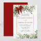 Winter Greenery Red Bow Rustic *Gold Frame Wedding Inbjudningar