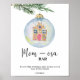 Vinter gren med leksak. Vattenfärgad babyduschinbjudan med julen gräs gren med nyårets bollar i leksak i ett brödhus.