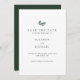 För paret som planerar ett vinterbröllop. Vinter-helgdag botaniskt bröllop spara datum med minimalistisk utformning och snyggt. Helgdag kan vara personlig med era uppgifter om bröllop. Baksidan av datumsparandet finns på en vintertid mörk grönt.