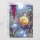 En digital målning av gräs träd dekorerad för en vinterfestival med prydnadsföremål, ljus och polkagrisar. Använda verktyg för att redigera textrutorna för fram- och baksidan av inbjudan.
