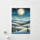 Ett serene vinterlandskap breder ut sig under glöden av ett fullt måne, med rullande backe täckt i snö och prickad med mörk evergreen träd. Stars snurrar på djupt natten himmel och ger en magisk beröring till den fredliga scenen. Detta fantastiska landskap har ett fullt som belyser en landsbygd som är täckt av snö under vintern, med backe, träd och en stjärna fylld himmel.